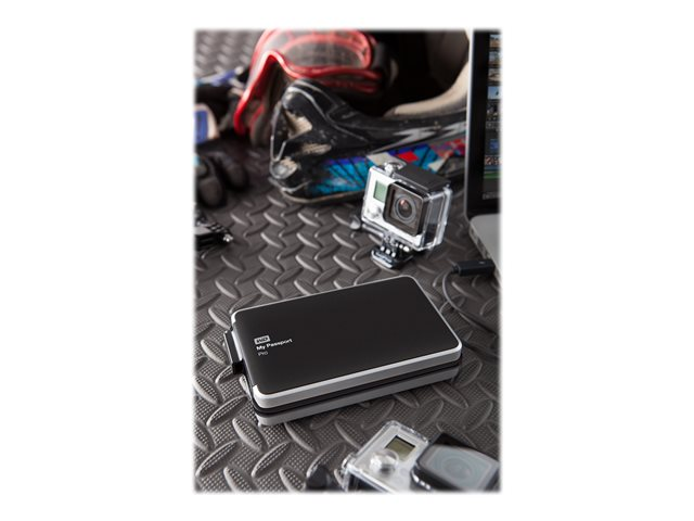 The anodized, all-aluminum enclosure helps protect the drives inside so whether you're filming a new documentary out in the field or presenting your portfolio to a client, My Passport Pro is designed for any on-the-go workflow.