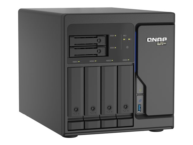 Intel Xeon D stationär QuTS hero NAS med fyra 2,5GbE-portar, konstruerad för SnapSync-datasäkerhetskopiering i realtid och VM-applikationer.