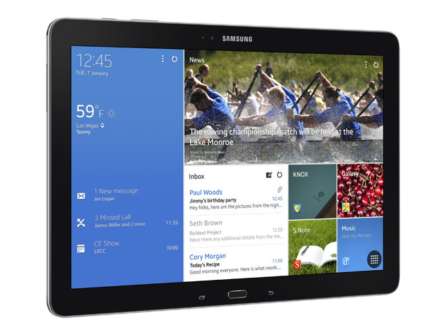 | Förinstallerad programvara | Gmail, YouTube, Samsung Apps, Photos, Google Search, Google Voice Search, Evernote, Newsstand, DropBox, Google Plus, Google Chrome, Samsung TouchWiz, Google Drive, Google Play Store, Google Play Books, Google Play Movies & TV, Google Play Music, Samsung KNOX, Samsung Kies, AllShare Cast, Google Plus Hangouts, Samsung Hub, Bloomberg Businessweek+, NYTimes, Google Settings, Google Play Games, Samsung Magazine UX, Samsung e-Meeting, Samsung SideSync 3.0, Cisco WebEx Meetings, Remote PC, Sketchbook Pro |