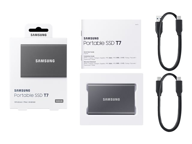 Samsung T7 MU-PC500T - SSD - krypterat - 500 GB - extern (portabel) - USB 3.2 Gen 2 (USB-C kontakt) - 256 bitars AES - Titan gray
