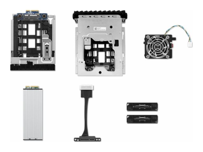 | Förpackningens innehåll | Fläkt, 2 främre lagringsplatser, Flex bay-kabel, M.2 SSD-fack med främre åtkomst |