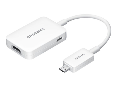 The Samsung HDTV universal adaptor supports HD video signals up to 1080p and connects directly to your MHL-enabled mobile phone's 11-pin Micro USB socket. Next, simply connect a standard HDMI cable to your TV, monitor or home theater system to enjoy big-screen viewing for all your mobile content. This adaptor is powered via its Micro USB port but may also be powered through the HDMI port if your TV is compatible.