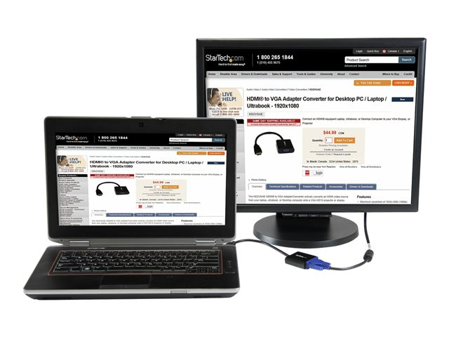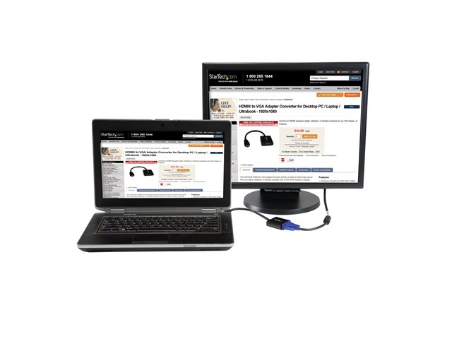 StarTech.com HDMI till VGA-adapter för stationär/bärbar dator/Ultrabook - 1920x1080 - Videokort - HDMI hane till HD-15 (VGA) hona - 24.5 cm - svart - stöd för 1080p, aktiv - för P/N: DK30C2DPEPUE, DK30C2DPPDUE, DK31C3HDPD, DK31C3HDPDUE, SV211HDUC, SV221HUC4K