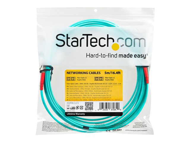 StarTech.com Aqua OM4 Duplex Multimode Fiber - 16 ft / 5m - 100 Gb - 50/125 - OM4 Fiber - LC to LC Fiber Patch Cable (450FBLCLC5) - Nätverkskabel - LC multiläge (hane) till LC multiläge (hane) - 5 m - fiberoptisk - duplex - 50/125 mikron - OM4 - havsblå