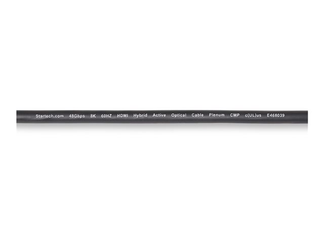Upptäck en visningsupplevelse med StarTech.com 50ft HDMI 2.1 Hybrid Active Optical Cable. Den här kabeln är utformad för dem som kräver högkvalitativa, tillförlitliga anslutningar och levererar med en bandbredd på 48 Gbps, med stöd för 8K 60Hz och 4K 120Hz video. Det handlar inte bara om det visuella, den erbjuder också en uppslukande ljudupplevelse med 32 ljudkanaler och stöd för 7.1-surroundljud.