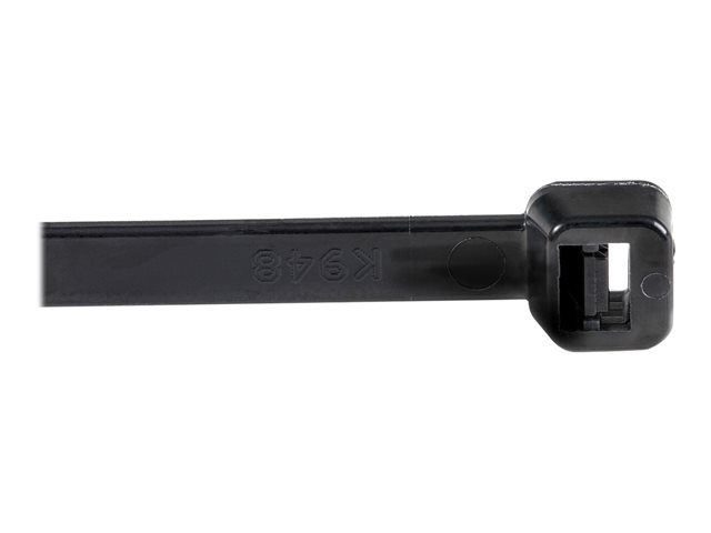 StarTech.com 10"(25cm) Cable Ties, 1/8"(4mm) wide, 2-5/8"(68mm) Bundle Diameter, 50lb(22kg) Tensile Strength, Nylon Self Locking Zip Ties w/ Curved Tip, 94V-2/UL Listed, 100 Pack, Black - Nylon 66 Plastic - TAA (CBMZT10B) - Kabelsamlare - 25.4 cm - svart - TAA-kompatibel (paket om 100)
