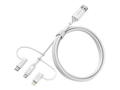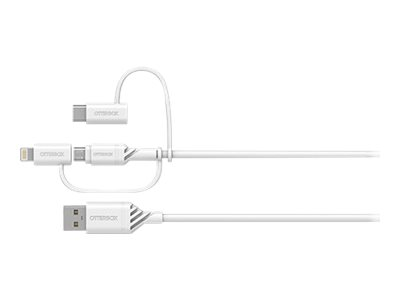 OtterBox Standard - USB-kabel - USB (hane) till mikro-USB typ B, Lightning, USB-C (hane) - USB 2.0 - 3 A - 1 m - molndrömfärgad vit 78-52686
