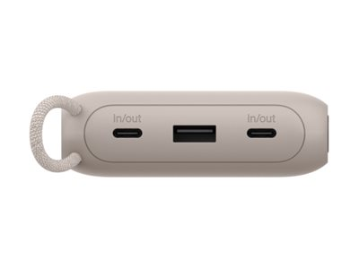 Belkin BoostCharge - Power bank - med display - 20000 mAh - 20 Watt - PD - 3 utdatakontakter (2 x USB-C, USB) - på kabel: USB-C - sand