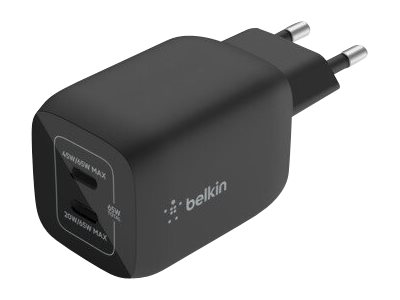 Belkin BoostCharge Pro - Strömadapter - PPS-teknik - 65 Watt - 3.25 A - PD 3.0, Fast Charge - 2 utdatakontakter (USB-C) - svart WCH013VFBK