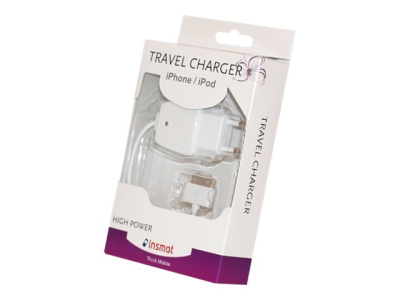 Insmat - Strömadapter (Apple Dock) - på kabel: 30-pin Apple - vit