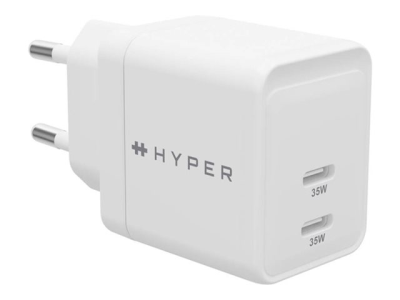 HyperJuice - Strömadapter - GaN - 35 Watt - QC 3.0, Power Delivery 3.0 + PPS - 2 utdatakontakter (USB-C) - vit - Europa