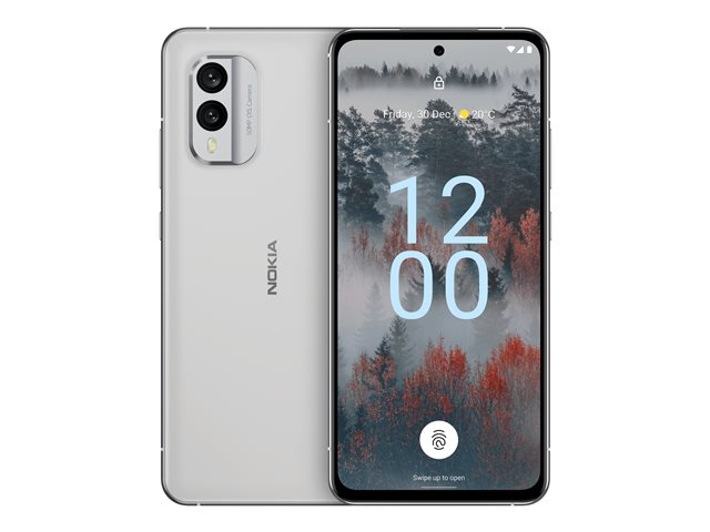 Nokia X30 5G - 5G pekskärmsmobil - dual-SIM - RAM 6 GB / Internal Memory 128 GB - OLED-skärm - 6.43" - 2400 x 1080 pixlar (90 Hz) - 2 bakre kameror 50 MP, 13 MP - front camera 16 MP - ice white VMA751V9FI1SK0