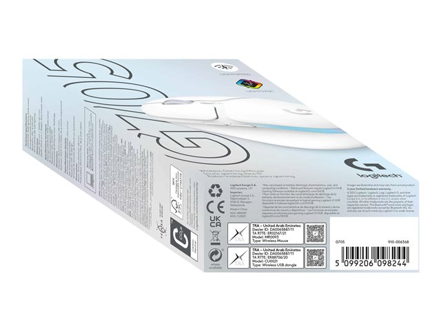 Logitech G G705 - Mus - små händer - 6 knappar - trådlös - Bluetooth - USB Logitech LIGHTSPEED-mottagare - vit