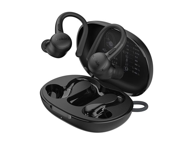 Belkin SoundForm ActiveFit - True wireless-hörlurar med mikrofon - öronknopp - montering över örat - Bluetooth - svart