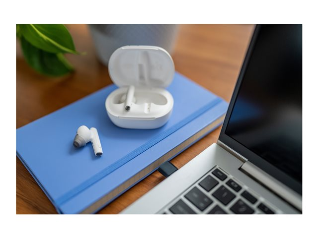 Dessa earbuds skapar en ny värld som är full av ljud och fri från brus. Dessa trådlösa earbuds är designade för att hålla användaren produktiv och uppkopplad oavsett om det gäller ett videomöte eller uppspelning av spellista.