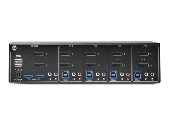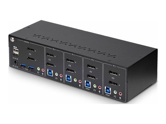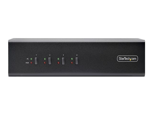 StarTech.com 4-Port Dual-Monitor DisplayPort KVM Switch, 4K 60Hz, 2x USB 5Gbps Hub Ports, 2x USB 2.0 HID Ports, Hotkey and Push-Button Switching, TAA Compliant - 3.5mm Audio, HDCP (P4DD46A2-KVM-SWITCH) - Omkopplare för tangentbord/video/mus/ljud - 4 x KVM/ljud/USB - 1 lokal användare - skrivbordsmodell - TAA-kompatibel