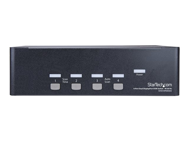 StarTech.com 4-ports Dual DisplayPort KVM-switch - 4K 60 Hz - Omkopplare för tangentbord/video/mus/ljud/USB - 4 x KVM/ljud/USB - 1 lokal användare - rackmonterbar, skrivbordsmodell SV431DPDDUA2