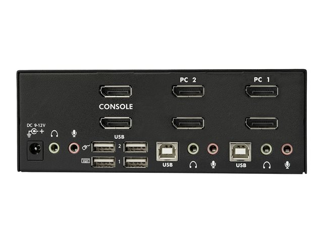 StarTech.com DisplayPort KVM-switch med 2 portar för dubbla skärmar - 4K 60 Hz - Omkopplare för tangentbord/video/mus/ljud/USB - 2 x KVM/ljud/USB - 1 lokal användare - skrivbordsmodell - Växelström 120/230 V/likström 12 V - för P/N: SVA12M2NEUA, SVA12M5NA