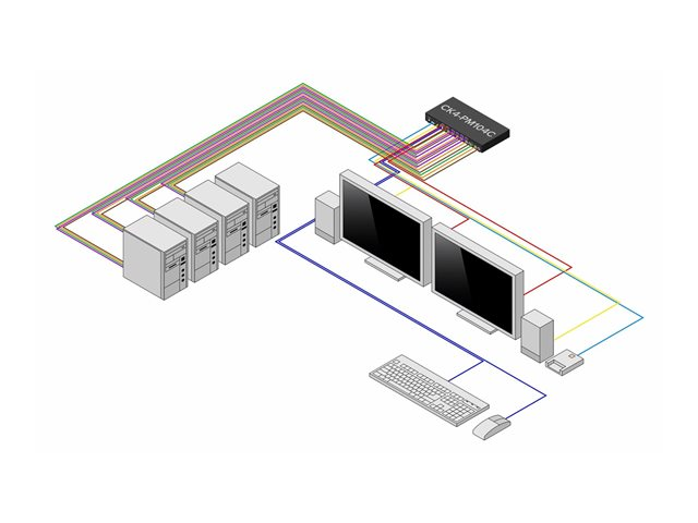 | Gränssnitt | 3 x USB 2.0 Type A konsol 2 x HDMI-utgång konsol 1 x ljud telefon stereo 3,5 mm konsol 4 x DisplayPort-ingång värd 4 x ljudinmatning telefon stereo 3,5 mm värd 8 x USB 2.0-ingång Type B värd |