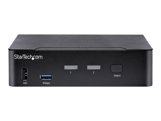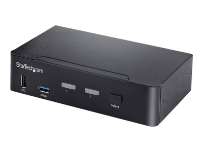 StarTech.com USB C KVM Switch, 2 Port DisplayPort KVM w/ 4K 60Hz UHD HDR Video, 3.5mm Audio, USB Type C KVM Switch, 4x USB HID and 2x USB A 3.2 Gen 1 5Gbps Hub, Thunderbolt 3/4 Compatible - Hot Key Switching (SV231DPUCA) - Omkopplare för tangentbord/video/mus/ljud/USB - 2 x KVM/ljud/USB - skrivbordsmodell - TAA-kompatibel SV231DPUCA