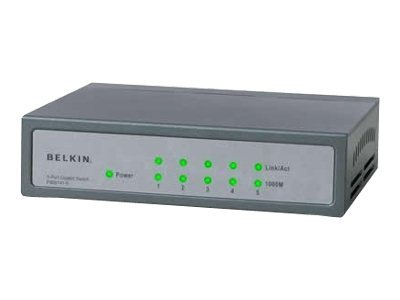 Belkin Gigabit Switch - Switch - ohanterad - 5 x 10/100/1000 - skrivbordsmodell, väggmonterbar F5D5141AZ5