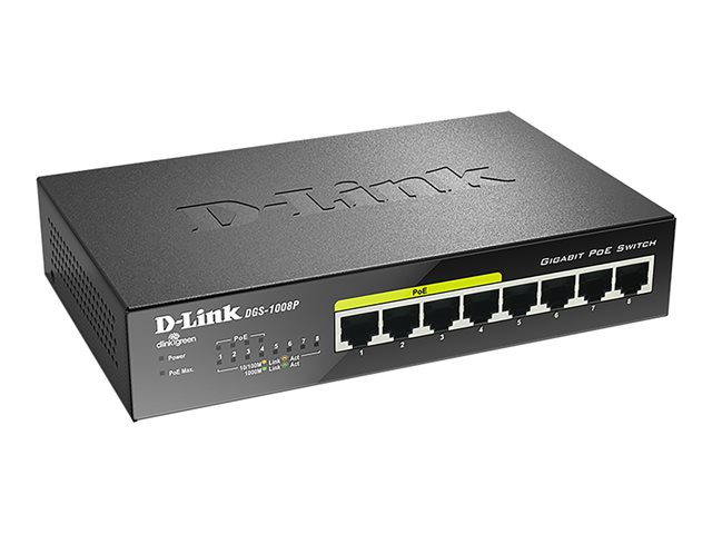 D-Link DGS 1008P - Switch - ohanterad - 4 x 10/100/1000 (PoE) + 4 x 10/100/1000 - skrivbordsmodell - PoE