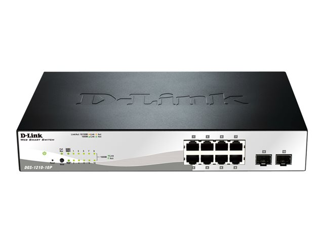 D-Link Web Smart DGS-1210-10P - Switch - Administrerad - 8 x 10/100/1000 (PoE+) + 2 x Gigabit SFP - skrivbordsmodell - PoE+ (78 W)