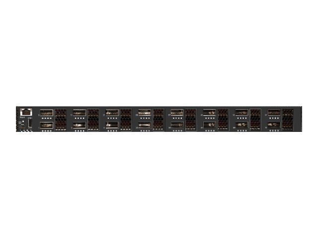 | Gränssnitt | 16 x 10Gbit/40Gbit LAN QSFP+ 1 x konsol (mini-USB) 1 x 1000Base-T RJ-45 hantering 1 x USB |