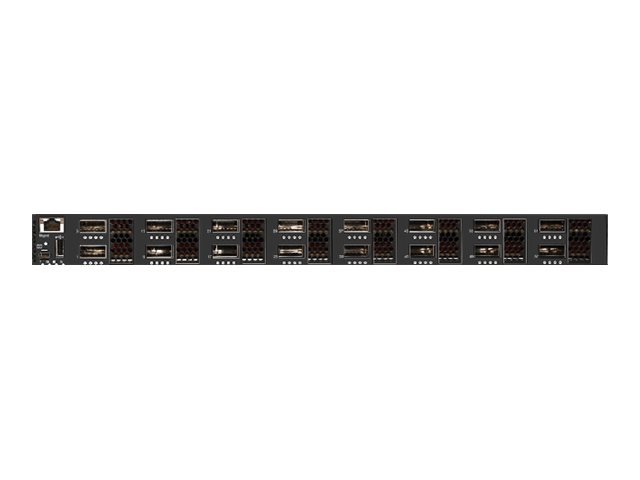 | Gränssnitt | 16 x 10Gbit/40Gbit LAN QSFP+ 1 x konsol (mini-USB) 1 x 1000Base-T RJ-45 hantering 1 x USB |