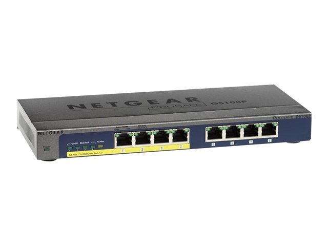 NETGEAR Plus GS108PE - Switch - 4 x 10/100/1000 (PoE) + 4 x 10/100/1000 - skrivbordsmodell - PoE GS108PE-100EUS