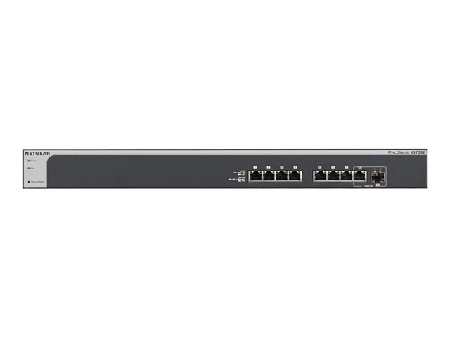 The NETGEAR ProSAFE Plus 10GE Switch with 8 10GE copper ports and 1 SFP+ combo port provides SMB customers with the most cost-effective solution to upgrade their network with 10GE connections into servers and NAS. It comes with ease-to-use network configuration capabilities such as VLAN, QoS, link aggregation, and more.