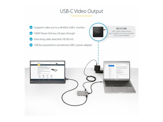 StarTech.com 4-Port USB-C Hub with USB-C DP Alt Mode Video Output 4K 60Hz, 3x USB-A, 1x USB-C, 100W Power Delivery Pass-Through, USB 3.2 Gen 2 (10Gbps), Portable USB Type-C to USB Type-A/C - 1ft (30cm) Host Cable (HB31C3A1CDPPD3) - Hubb - 1 x USB-C + 3 x USB 3.2 Gen 2 - skrivbordsmodell