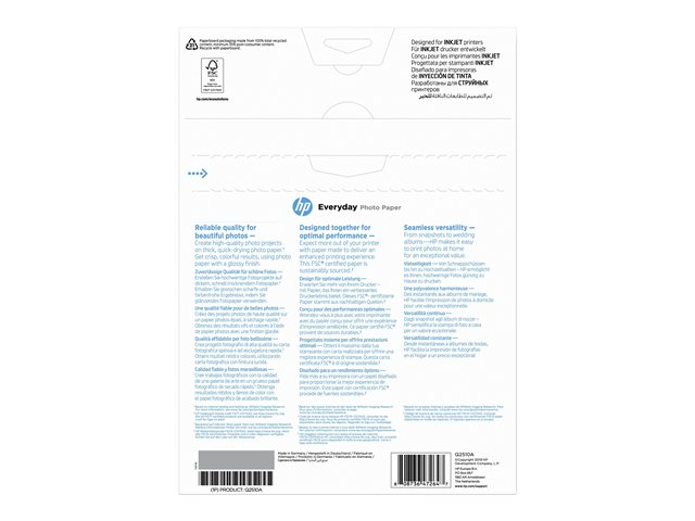 HP Everyday Photo Paper - Blank - A4 (210 x 297 mm) - 200 g/m² - 100 ark fotopapper - för Officejet 20X, 38XX, 46XX, 52XX, 6000 E609, 68XX, 80XX; Photosmart B110, Wireless B110 Q2510A