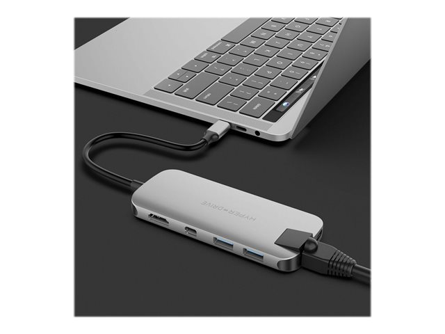 HyperDrive Slim 8-in-1 Hub - Dockningsstation - USB-C - HDMI, Mini DP - 1GbE HD247B-SILVER