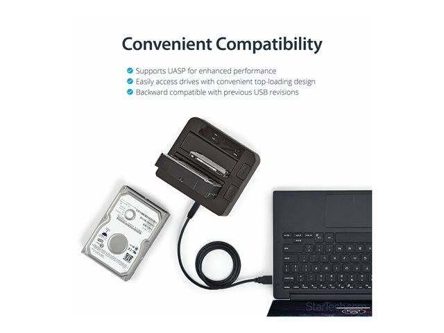 StarTech.com Dual-Bay USB 3.1 to SATA Hard Drive Docking Station, USB 3.1 (10 Gbps) Hard Drive Dock, External 2.53.5 SATA IIIIII, SSDHDD Docking Station, Hot-Swap Hard Drive Bay - Top-Loading - Kontrollerkort - 2.5", 3.5" - USB 3.1 (Gen 2) - svart SDOCK2U313