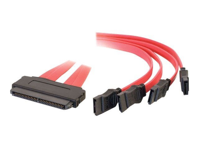 C2G Internal SAS 32-pin (SFF-8484) to Four Serial ATA (SATA) Cable - SATA/SAS-kabel - Serial ATA 150/300/600/ SAS 6Gbit/s - 4-vägs - 32-pin 4i MultiLane (hona) till SATA (hona) - 1 m - röd
