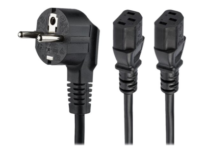 StarTech 2m (6ft) Computer Power Cord, 18AWG, EU Schuko to 2x C13 Power Cord, 10A 250V, Black Replacement AC Cord, TV/Monitor Power Cable, Schuko CEE 7/7 to IEC 60320 2x C13 Power Cord - PC Power Supply Cable - Strömkabel - power CEE 7/7 (hane) till power IEC 60320 C13 - AC 250 V - 10 A - 2 m - svart