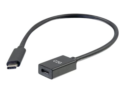C2G 1ft USB-C to C 3.1 (Gen 2) Male to Female Extension Cable (10Gbps) - USB-förlängningskabel - USB-C (hane) till USB-C (hona) - USB 3.1 Gen 2 / Thunderbolt 3 - 3 A - 30 cm - formpressad - svart