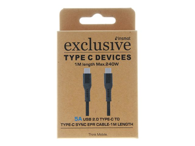 Insmat - USB-kabel - 24 pin USB-C (hane) till 24 pin USB-C (hane) - USB 2.0 - 48 V - 5 A - 1 m - USB-strömförsörjning (240W), up to 480 Mbps - svart