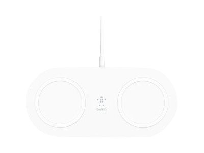 Belkin BoostCharge Dual - Trådlös laddningsplatta + växelströmsadapter - 15 Watt - vit - för Apple iPhone 11, 11 Pro, 11 Pro Max, 8, 8 Plus, X, XR, XS, XS Max; Samsung Galaxy Note10, Note10+, S10, S10+, S10e WIZ008VFWH