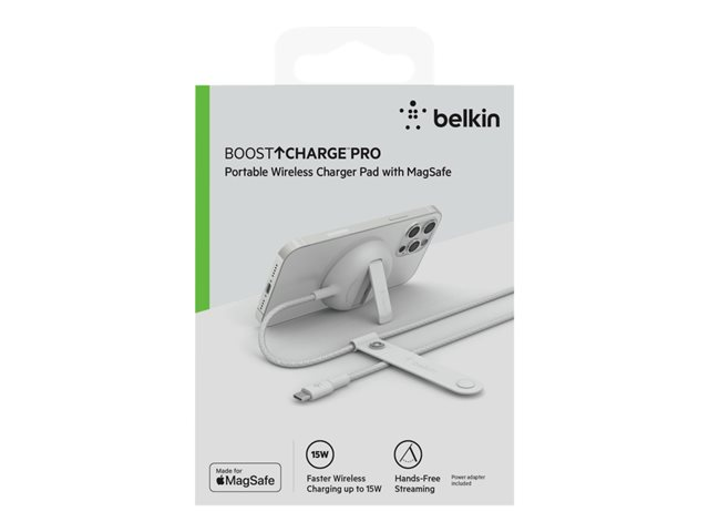 Belkin BoostCharge Pro - Trådlös laddningsplatta - 15 Watt - Fast Charge (magnetisk) - vit - för Apple iPhone 12, 12 mini, 12 Pro, 12 Pro Max