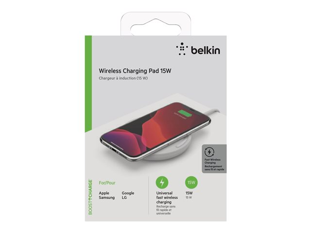 Belkin BoostCharge - Trådlös laddningsplatta + växelströmsadapter - 15 Watt - QC 3.0 - vit