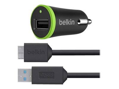 Belkin Car Charger - Strömadapter för bil - 10 Watt - 2.1 A (USB) - på kabel: Micro-USB - svart - för Samsung Galaxy Note 3, NotePRO (12.2 tum), S5, TabPRO (12.2 tum)