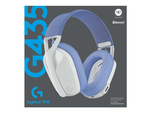 Logitech Lightspeed G435 - Headset - fullstorlek - Bluetooth/radiofrekvens 2,4 GHz - trådlös - vit - Discord-certifierad