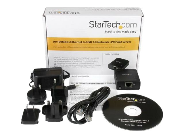 StarTech.com 10/100 Mbps Ethernet till USB 2.0 LPR-nätverksskrivarserver - Printserver - USB 2.0 - 10/100 Ethernet - svart - för P/N: SVA5H2NEUA