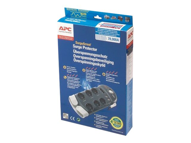 APC SurgeArrest Home/Office - Överspänningsskydd - AC 230 V - utgångskontakter: 6 - Tyskland - träkol